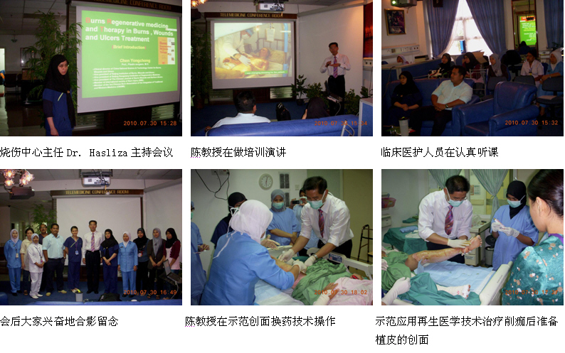 8¡¢7ÔÂ30ÈÕÉÏÎ磬³Â½ÌÊÚÓ¦Ñûµ½Hospital Selayang Dato Pathanan( Ê¡Õþ¸®Ò½Ôº£¬Ò²ÊÇÍâµØ×î´óµÄÒ½Ôº£¬450²¡´²£¬ÉÕÉËÖÐÐÄÓÐ8ÕŲ¡´²)ÏÈÈÝÉÕÉËÔÙÉúҽѧÊÖÒÕ²¢»áÕïÖ¸µ¼ÁÙ´²²¡Àý¡£Ñ§Êõ½»Á÷ºÍÏÖ³¡Ö¸µ¼ºó£¬¸ÃÔºÂíÉÏÒý½øºÍÓ¦ÓÃÔÙÉúҽѧÊÖÒÕÖÎÁÆÉÕÉË´´Ññ»¼Õß¡£1¸öÔºóËæ·Ã»ñÖª£º½ÓÄÉÔÙÉúҽѧÊÖÒÕÖÎÁƵϼÕß»ñµÃÁ˺ܺõÄÁÙ´²Ð§¹û£¬ÊµÏÖÁËÐÂÒ½ÔºµÄÀֳɿª·¢¡£