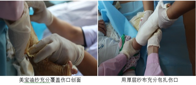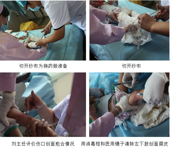 接下来我们看到的病人,是1个5个月大的小婴儿,遇到滚水不幸,双下肢烫伤其中左下肢较严重。