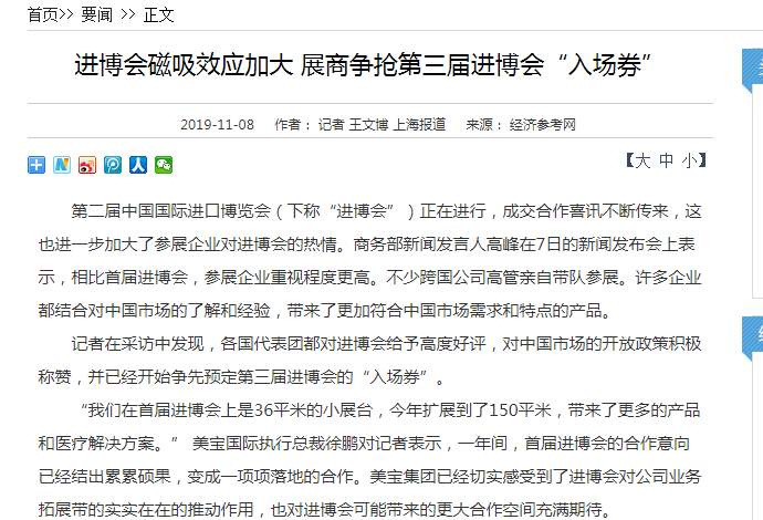 经济参考:进博会磁吸效应加大 展商争抢第三届进博会“入场券”