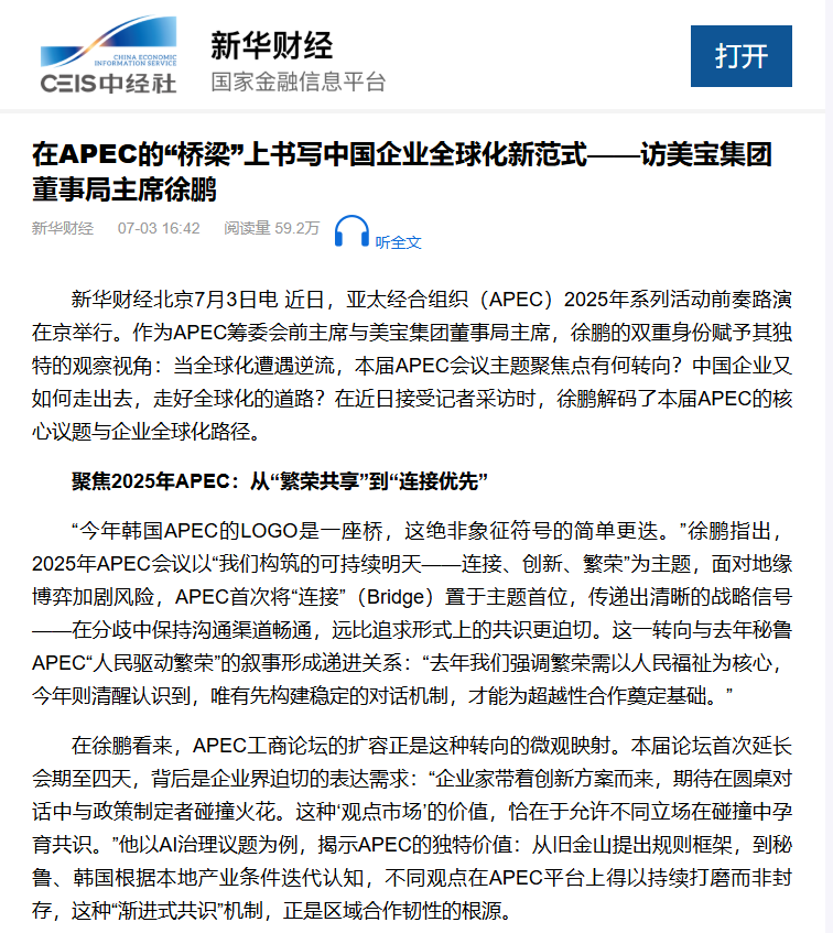 新华财经:在APEC“桥梁”上誊写中国企业全球化新范式—访一竞技集团董事局主席徐鹏