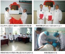 揭牌仪式由中心医院认真烧伤事情的程显主任主持 ,下昼2点随着各人掌声的响起揭牌仪式正式最先。于海院长与中国中西医团结学会烧伤专业委员樊教授配合揭牌 ,揭牌仪式时势很是热闹。樊教授现场为于海院长与程主任赠予了徐教授组织撰写的《烧伤治疗大全》。
